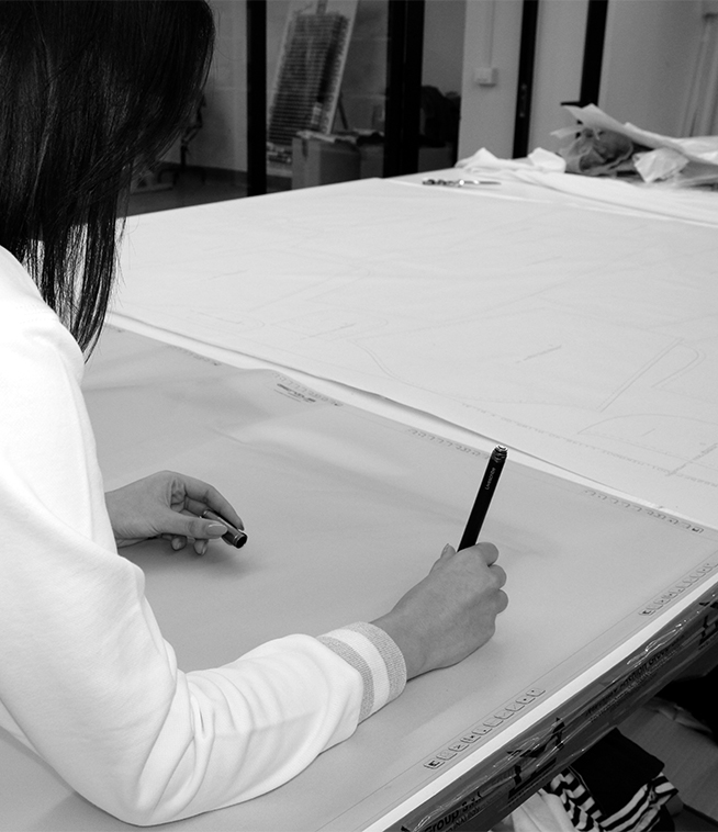 Ufficio prototipia: Siamo capaci di realizzare ogni tipo e categoria di prodotto nelle più svariate tipologie di materiali e tecniche costruttive; l’attenzione ai dettagli, la cura sartoriale ed il dialogo (continuo feedback) tra modelleria e sartoria sono i punti di eccellenza dell’azienda.
