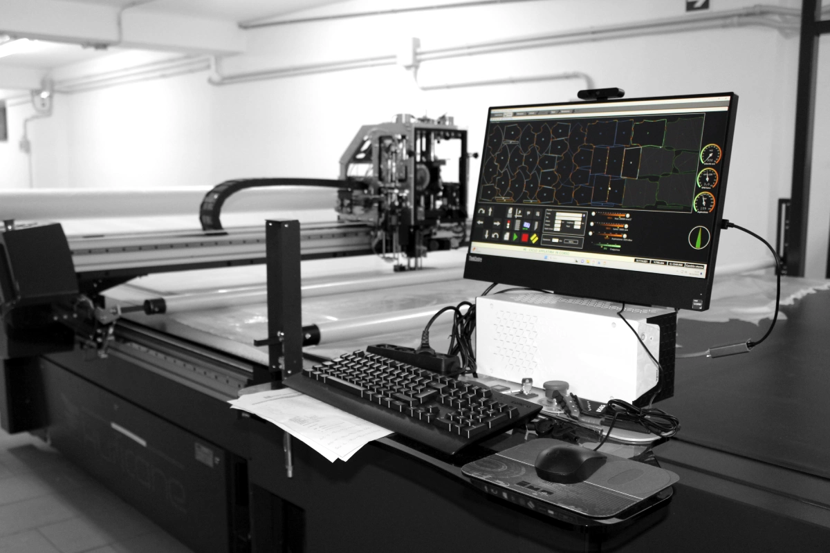 La nostra sala taglio automatizzata, industria 4.0, rappresenta il cuore pulsante della nostra produzione, incorporando tecnologia all'avanguardia per garantire precisione, efficienza e qualità.
